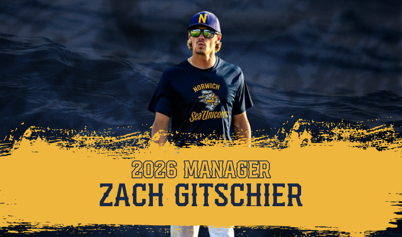 The Norwich Sea Unicorns today have announced the new Field Manager for the upcoming 2026 season, promoting Zach Gitschier from Pitching Coach to Manager, the 5th in the Sea Unicorns history, following Eric Campbell (2021-never managed a game after being signed by the Seattle Mariners to finish his professional playing career), Devin Belenski (2021-2022), Kevin Murphy (2023-2024) and Kyle Dembrowski (2025). Murphy, who led the Sea Unicorns to 76 regular season wins, two regular season championships and two Futures League postseason titles in his two years as manager, will continue in his role as Director of Player Personnel for the Sea Unicorns.